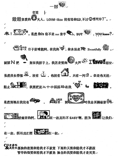 MM、菜鳥、恐龍、粉絲、BT……這些俏皮的“網(wǎng)語”一下子得到了很多年輕人的認(rèn)同!拔医(jīng)常把‘愛’字寫成‘じ☆ve’,里面有日文和英文,它能直觀形象地表達‘愛’的含義!鄙虾J械谒闹袑W(xué)初三學(xué)生君君說,她和同學(xué)在網(wǎng)上聊天時用的是“火星文”,她的QQ個性簽名也是“火星文”,她認(rèn)為這樣很可愛,也很有個性。