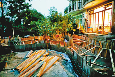 記者問到,這樣改建會不會破壞綠化!安粫模堉車臉I(yè)主放心吧,這塊地也絕對不會挪作他用,只不過建一個池塘而已!睂τ诰G地上原先栽種的樹木,郭小姐說他們挖出了兩棵,打算移植到別的地方。