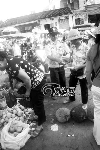 然而,負(fù)責(zé)市場(chǎng)管理的縣城建監(jiān)察人員不僅不制止亂擺攤行為,而且向這些攤位收了錢后就聽之任之。吳先生說:“定安縣政府發(fā)布《通告》禁止亂擺亂放,這些人還敢這樣違背政府的工作要求,我不知道這到底是為什么?”