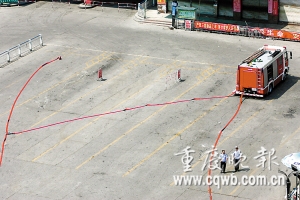 在民警的帶領(lǐng)下,搜爆犬進(jìn)入宏聲大廈逐層搜爆。公交車站內(nèi),上百民警嚴(yán)陣以待,封鎖各個(gè)路口,防止市民進(jìn)入。消防特勤三支隊(duì)也隨時(shí)待命,一旦發(fā)生爆炸,將用最快的速度滅火。