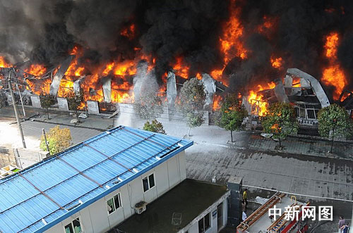 中新網(wǎng)溫州7月19日電(記者 江耘 通訊員 徐行號(hào) 姜嬋娟 劉榮平) 2009年7月19日10時(shí)55分許,浙江溫州龍灣區(qū)農(nóng)業(yè)開(kāi)發(fā)區(qū)文匯路19號(hào)的愛(ài)好筆業(yè)倉(cāng)庫(kù)發(fā)生火災(zāi)。記者發(fā)稿時(shí),大火已經(jīng)燒了7個(gè)小時(shí),過(guò)火面積約達(dá)3000平方米,200余名消防官兵依舊無(wú)法徹底降伏火魔。