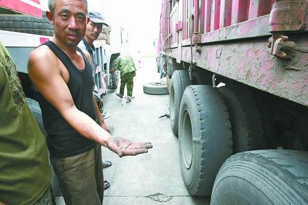 約半小時(shí)后,記者趕到京港澳高速鄭州東服務(wù)區(qū)。西側(cè)服務(wù)區(qū)停車場里,仍停有七八輛被扎破輪胎的貨車,每輛車被扎爛輪胎1至3只不等。司機(jī)們一籌莫展,不停嘆氣。