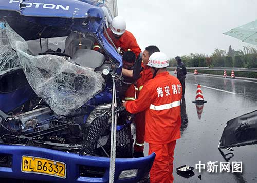 中新網(wǎng)南通8月10日電 (裘明明 王如海) 今天上午,江蘇南通沿海高速海安段兩輛貨車發(fā)生追尾事故,一名駕駛員被困,當(dāng)?shù)叵拦俦苤笥瓿晒⒈焕藛T救出。警方提醒,近期受臺(tái)風(fēng)影響,降水較多,廣大駕駛員朋友更要注意安全行車。