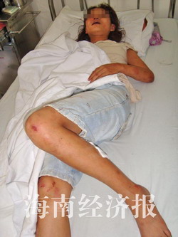 當天下午,記者在瓊山人民醫(yī)院見到身上多處刀傷、頭部嚴重受傷的受害人林某。林某說,兩年前,曾與柯某爭奪過男朋友,柯某曾叫幾個姐妹來打她。她和幾個姐妹也把柯某及其姐妹打了。后來柯某的男朋友因搶劫坐了牢。柯某卻一直對她懷恨在心。