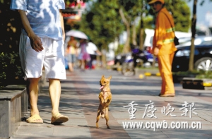 據(jù)了解,狗狗直立行走迄今是謎,如此行走是否給動物帶來傷害,專家正在研究。 (黃艷春)