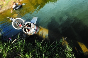 時間:9月9日 地點:房山區(qū)一湖畔 事件:農民工自制潛艇試水