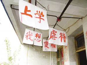“我想上學(xué)”、“變相虐待”……一月來,幾乎每個到涪陵區(qū)防疫站體檢的人都會看到一家陽臺上掛著這樣的字幅。