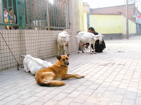 幾天前,記者在韋曲街道見到了老魏,老魏正忙著擠羊奶。老魏告訴記者,他養(yǎng)這4只奶山羊,“虎子”幫了大忙咧。老魏說的“虎子”其實就是臥在4只羊跟前的一條黃狗!斑@虎子今年才3歲,可真是羊的鐵桿保鏢!崩衔撼鲩T賣羊奶,他背個手在前面走,“虎子”領著羊兒跟在后面。到了下午,老魏到坡上放羊。他把“虎子”叫到羊跟前,吩咐一聲“把羊看好”后,便忙別的事。“虎子”可是盡職盡責,一直守在羊跟前,生人要想靠近羊兒連門都沒有。天快黑了,老魏來到坡下,“回家咧!”一聲吆喝,“虎子”領著羊群順溜溜地下了坡!3年來,還沒丟過羊呢!崩衔赫f起虎子來贊不絕口。
