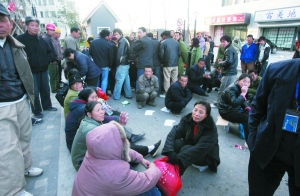 昨天中午,為討薪,圍堵(北京市)大興區(qū)世嘉博苑小區(qū)大門已兩天的300余名建筑工人,開始向小區(qū)內(nèi)投擲磚頭,并欲強(qiáng)行沖入小區(qū)。開發(fā)商雇用的保安也動用水槍向工人們噴射。