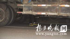 當(dāng)晚7點左右,記者趕到新北區(qū)惠山路某工地門口,只見一輛安徽牌照卡車停在路邊,周圍有很多市民,車底下豎著兩條人腿,原來是一名男子貓著腰坐在車底下。一名交警正彎著腰勸說卡車底下的人,可該男子就是不愿鉆出來。