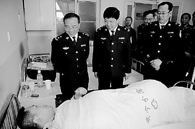 10月16日,省公安廳副廳長、市公安局局長王幸等領(lǐng)導(dǎo)專程趕往醫(yī)院,親切看望和慰問了在抓捕毒販中英勇負(fù)傷的禁毒大隊大隊長徐光明。在病房,王幸對徐光明、李剛、劉紅生、王麗萍4名民警的行為給予贊揚,并囑咐他們好好養(yǎng)傷,爭取早日康復(fù)。