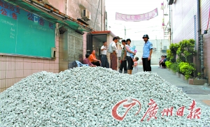 昨天早上7時,家住順德區(qū)容桂恒順閣小區(qū)的桂婆拄著拐杖去買菜,剛走到小區(qū)門口時就愣住了:狹窄的小道被一堆1米來高的碎石堵得嚴嚴實實。該小區(qū)50多戶居民只好在碎石邊鏟出一條小道,但是小區(qū)內(nèi)仍有多輛私家車受堵開不出去。