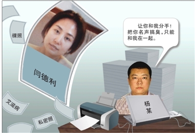 今年6月,閆德利提出分手。楊某不同意,對其百般糾纏,但遭到了閆德利的拒絕。8月初,楊某從中關(guān)村專門購買了筆記本電腦、上網(wǎng)卡、打印機(jī)、塑封機(jī)等設(shè)備,接下來便是打印散發(fā)與閆德利同居時(shí)的私密照,開博捏造事實(shí),公布“嫖客”電話號(hào)碼……成為掀起軒然大波的“艾滋女”事件的始作俑者。