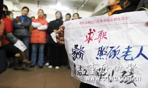 昨下午,記者來到位于渝中區(qū)解放西路的南紀(jì)門勞務(wù)市場,打探保姆行情。一走到女工區(qū),立刻有三四個中年婦女圍了過來,詢問是否需要保姆。一聽是照顧兩個80多歲的老人,幾個人連連搖頭,轉(zhuǎn)身就走。