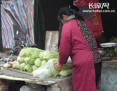 11月12日、13日,記者走訪了市區(qū)包括被告誡超市在內(nèi)的多家超市。在北國(guó)超市裕華店,蔬菜被分為小包裝整齊地?cái)[放在柜臺(tái)上,價(jià)目表也被擺在很醒目的位置,盡管如此,前來(lái)買(mǎi)菜的市民還是習(xí)慣性地拿起菜先看一下貼在包裝上的價(jià)格。記者發(fā)現(xiàn),很多市民在蔬菜柜臺(tái)前停留,但放入購(gòu)物籃中的蔬菜卻很少。“很難想象,大白菜都10塊錢(qián)一棵,吃不起菜了。”家住尖嶺小區(qū)的孫大媽望“菜”興嘆。
