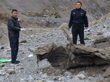 接到報(bào)案后,桑棗派出所民警迅速到達(dá)現(xiàn)場(chǎng)展開(kāi)勘察。在現(xiàn)場(chǎng),他們發(fā)現(xiàn)一輛壓扁的白色汽車,其實(shí)也只能算汽車的一部分了:車體和輪胎已經(jīng)分離,輪胎已經(jīng)爆裂,輪轂上包裹著厚厚的泥沙。車輛被山石擠壓,已經(jīng)嚴(yán)重變形,車型和車牌號(hào)都無(wú)法辨清,只能判定為一輛白色小轎車,從外形上看像北斗星小轎車。