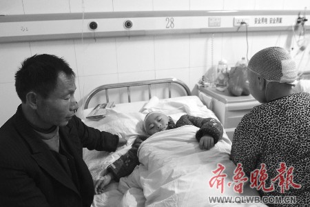 在醫(yī)院,記者見到了術(shù)后的三個(gè)女孩。據(jù)醫(yī)務(wù)人員介紹,4歲的小女兒倩倩受傷最嚴(yán)重,其頭部被砍五刀,左手被砍掉兩個(gè)手指,剛從重癥監(jiān)護(hù)室轉(zhuǎn)入病房;二女兒6歲的蕊蕊頭部被砍三刀,肩膀被砍一刀,昏迷了兩天后,目前高燒不退,躺在病床上接受治療;10歲的大女兒華華頭部被砍一刀。吳某的鼻梁和下唇被妻子砍斷。短短幾天,已花去了三萬多元的治療費(fèi)用,這些錢是吳某從親戚、朋友那里東拼西湊借來的,由于倩倩和蕊蕊受傷較重,還需更多的醫(yī)療費(fèi)用,吳某和大女兒都沒有住院,而是到醫(yī)院附近的衛(wèi)生室掛吊瓶。