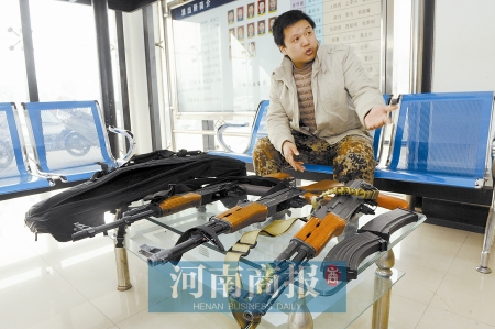 嫌網(wǎng)絡(luò)虛擬游戲不過(guò)癮,鄭州幾個(gè)CS發(fā)燒友買(mǎi)來(lái)AK47仿真槍準(zhǔn)備玩實(shí)戰(zhàn)游戲。但民警提醒,拿仿真槍玩實(shí)戰(zhàn)游戲是違法的。