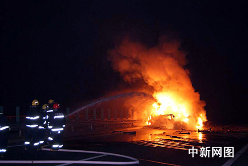 中新網(wǎng)寧波12月12日電(記者 何蔣勇 通訊員 來明)12日凌晨1時(shí)43分,位于杭甬高速浙江寧波出口不到2公里處發(fā)生一起慘劇,一輛奔馳小轎車與一輛大型掛車發(fā)生追尾后撞上公路護(hù)欄,奔馳車起火燃燒,事故造成車上兩人命喪火海。