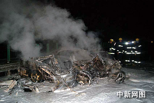 隨后,經(jīng)過消防官兵近20分鐘的奮力撲救,大火被成功撲滅,后經(jīng)官兵們仔細(xì)偵查后發(fā)現(xiàn),在奔馳轎車的駕駛室與車后座各有一人,但都已喪生火海。