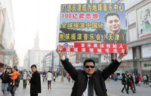 給自己思想定價(jià)100億的這位男子自稱叫毛杰東,廣西南寧人。按他所說(shuō),此次來(lái)天津“賣思想”的目的就為了自己的“搖滾音樂(lè)夢(mèng)”!皧W運(yùn)會(huì)是全世界的體育盛會(huì),我的想法就是辦一個(gè)全球搖滾音樂(lè)會(huì),邀請(qǐng)世界上所有國(guó)家的搖滾歌星來(lái)參加,你說(shuō)我這個(gè)思想值不值100億?”毛杰東侃侃而談。毛杰東說(shuō),老家南寧的一家酒吧為他和他的一名經(jīng)紀(jì)人提供資金支持,每天500元左右。