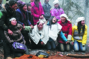 正午十二點,六七家失去親人的家庭都放起了鞭炮,敲起了鑼鼓。