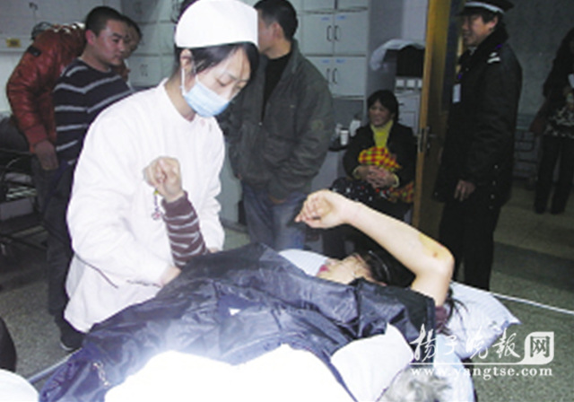 在中大醫(yī)院急診室,一女子拉著參與救人的兩位熱心女子,流著眼淚感謝她們。據(jù)她講,受傷的是其妹妹,叫朱貴娟,今年23歲,是一家婚紗店的攝影師。當(dāng)時(shí)她下班騎車回家,沒想到遭遇車禍。多虧好心市民幫忙,兩位大姐陪同妹妹來(lái)到醫(yī)院看傷,她們還墊付了1000多元醫(yī)藥費(fèi)。