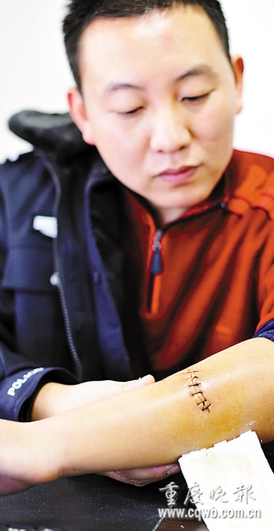 他叫張放,巫山縣公安局刑警大隊(duì)三中隊(duì)中隊(duì)長(zhǎng)。昨天,張傷愈出院,行兇歹徒吳某被巫山縣警方刑事拘留。