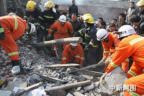 由于樓房受到巨大的爆炸沖擊,大量樓板、瓦片埋壓在一起,東、西兩側都有明火冒出,情況危急,廢墟中多人被埋,消防官兵握著水槍,將火勢控制在燃燒范圍內,同時救援人員在現(xiàn)場群眾的引導下,確定人員被困出,用身體頂住坍塌的水泥板、用雙手在廢墟中搶救被埋人員。一個,兩個,短短的5分鐘,救援人員與現(xiàn)場群眾從廢墟中救出5名被埋者,并第一時間送往醫(yī)院進行治療。