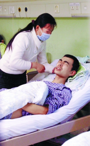昨晚,右腎已經(jīng)被摘除的高志強躺在北京朝陽醫(yī)院京西院區(qū)泌尿科病床上,妻子在一旁守護。為避免傷口感染,醫(yī)護人員不允許入內(nèi)探望。