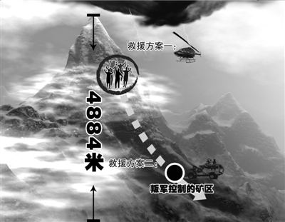 據了解,還有兩個方式走出原始秘境。一是乘坐直升機,但每天如約而至的大暴雨根本沒有適合直升機飛行的條件。二是穿過當?shù)嘏衍娍刂频牡V區(qū)。但這需要有過硬背景的探險公司與政府武裝聯(lián)合,喬裝成礦工用軍車乘夜間護送。途中還需要很大一筆費用來打點當?shù)氐奈溲b分子,這樣才能順利通行。這些條件缺一不可,否則,很有可能被當?shù)胤钦溲b扣押。7名隊員一直認為這一路徑十分冒險。但如果不能原路返回,穿越礦區(qū)就成為登山隊員走出原始秘境的一條捷徑。