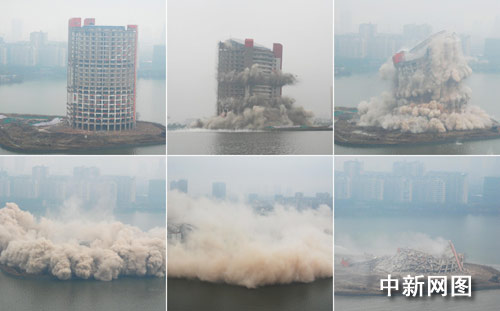 在現(xiàn)場,記者看到爆破后遺留的廢墟高約7至8米,據(jù)負(fù)責(zé)爆破的官員介紹,爆破產(chǎn)生的建筑垃圾面積達(dá)1萬平方米,重約4萬噸,將盡快被送往南昌市郊的垃圾填埋場。(完)
