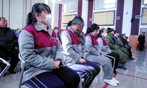 昨日上午,法庭內的旁聽席上坐了50余名旁聽者,據(jù)了解,其中多為被告人家屬。上午10時5分,31名被告人排隊進入法庭。