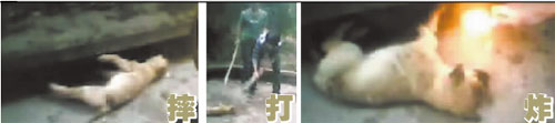 抓住小狗,把它從約2米高的階梯上用力摔下,一聲慘叫后,小狗動(dòng)彈不得;隨后,一名穿綠衣的男孩和一個(gè)穿橫條紋T恤的男孩將鞭炮塞進(jìn)已經(jīng)奄奄一息的小狗的嘴里和耳朵里炸;兩人還手持木棍對(duì)著小狗一頓亂打……這不是恐怖電影,而是發(fā)生在宜賓街頭的一起虐待流浪狗事件。