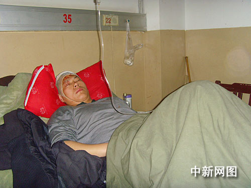 3月22日下午1時40分許,記者在阜陽市人民醫(yī)院急救中心二樓病房里,見到了肇事司機董飛,他躺在病床上,旁邊坐著一女子與其聊天。當(dāng)發(fā)現(xiàn)有記者前來采訪拍照,該女子迅速離開,面對記者董飛一直不開口說話。隨后,病房內(nèi)看守董飛的兩名警察阻止了記者采訪。