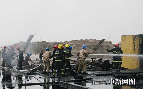 火災(zāi)撲滅火后,消防官兵對(duì)失蹤人員和事故現(xiàn)場(chǎng)進(jìn)行全面清理,在倒塌的油罐罐體下找到2具失蹤人員遺體;隨后,又在距爆炸油罐大約100米外的倉庫內(nèi)發(fā)現(xiàn)另外1具失蹤人員遺體。