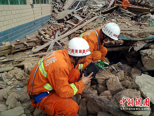 17日,按照四川省消防總隊(duì)高雨祥總隊(duì)長(zhǎng)的現(xiàn)場(chǎng)指揮和部署,全省300多名官兵分成4個(gè)中隊(duì)80多個(gè)救援小組,以結(jié)古鎮(zhèn)為中心向各街道、鄉(xiāng)鎮(zhèn)蔓延,入鄉(xiāng)進(jìn)村,仔細(xì)搜索被困群眾。