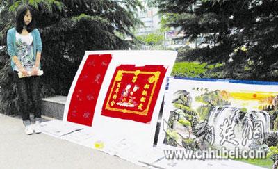 4月22日下午,在武漢光谷廣場的空地上,一名擺攤賣十字繡的美女大學(xué)生引起路人的關(guān)注。她在吆喝賣她的嫁妝,理由是為玉樹災(zāi)區(qū)獻愛心,不過一幅十字繡堅持賣3.8萬元,讓感興趣的人聽完直感慨,“這也太貴了吧!