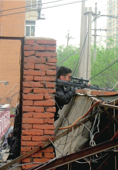 有目擊者稱,談判專家與男子對話過程中,受驚的媛媛哭聲不止。男子要求電話聯(lián)系的女子一直沒出現(xiàn)。男子隨后激動起來,屢次想用刀傷害小女孩,但被談判專家和特警制止。