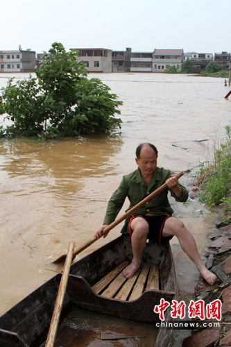 中新網(wǎng)撫州6月22日電(張見悅 艾永全 何柳斌)江西省第二大河撫河決堤之后,當(dāng)?shù)鼐用衽c各處趕到的抗洪大軍一道,展開生死救援,在重災(zāi)區(qū)羅針鎮(zhèn)梅家渡村,一位中年男子用自己家的小舢板來(lái)回?cái)?shù)十趟,將100多鄉(xiāng)親從澤國(guó)中送到了公路高地。