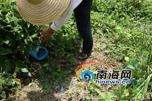 接到反映,南海網(wǎng)記者趕到位于牛嶺隧道旁的南海天闕.銀牛嶺度假別墅酒店項目工地,在工人們的帶領(lǐng)下,記者找到工地的蓄水池。在蓄水池下方的草叢中,被砍斷的水管赫然出現(xiàn)在記者眼前。