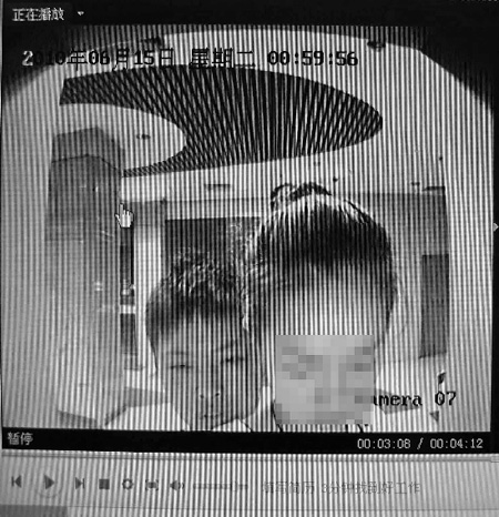 就在零點(diǎn)59分的時(shí)候,ATM機(jī)經(jīng)過(guò)了輸入密碼等一系列操作,吐出了現(xiàn)金,還有電子語(yǔ)音提示:“請(qǐng)?zhí)崛‖F(xiàn)金”。突然,屏幕上出現(xiàn)了一張臉,跟小方姑娘挨得特近,幾乎就湊在她脖子后面了;隨即小葉姑娘渾身一顫,兩眼翻白,腰部往前一挺,整個(gè)人往地下倒去。原來(lái)就是這個(gè)面目猙獰、比小葉姑娘矮上半個(gè)頭的劫匪把刀頂在了她腰上。