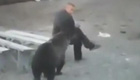 【解說】7月25日,重慶的室外溫度將近40℃,原本一動(dòng)不動(dòng)地趴在角落里減少體力消耗的棕熊被挑逗起來,原來,飼養(yǎng)員準(zhǔn)備的“冰點(diǎn)”來了,美味的冰凍西瓜成為了棕熊避暑小點(diǎn)心。