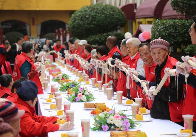 重慶:養(yǎng)老院擺長(zhǎng)桌面條宴迎重陽