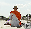 26日,在吉林省長春市偽滿皇宮博物院抗日英烈廳內(nèi),一位身穿黃色僧袍、手持“太鼓”的日本僧人向廳內(nèi)的“抗日英烈塔”深深鞠躬,為當年侵華日軍的罪行謝罪。(記者王艷秋 實習記者 畢強長春報道)
