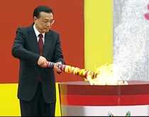 實(shí)拍李克強(qiáng)北大點(diǎn)燃深圳大運(yùn)會火炬
