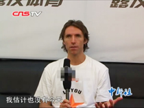 【解說(shuō)詞】當(dāng)日下午,正當(dāng)活動(dòng)進(jìn)行到一半時(shí),原本晴朗的天空突然下起大雨,預(yù)定納什做裁判的3V3斗牛比賽也被迫延時(shí)。但這絲毫未影響球迷的熱情,慕名前來(lái)一睹偶像風(fēng)采的球迷將納什的休息室外堵的水泄不通。甚至部分球迷為了吸引偶像注意,還在雨中打起籃球來(lái)。