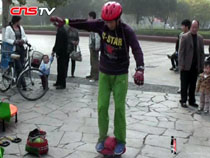 河南男子自創(chuàng)另類健身 動(dòng)作滑稽