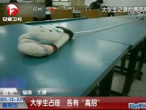 大學(xué)生占座五花八門(mén) 徽章手套齊上陣