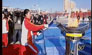 照耀在2012新年陽光里的長春凈月潭國家森林公園,銀裝素裹,65米長主雪雕“瓦薩天使”等冰雪藝術(shù)作品將這里裝扮成一個童話般的世界。東北健身秧歌、健身腰鼓等具有濃郁東北地方特色的表演在現(xiàn)場為火炬?zhèn)鬟f助興。